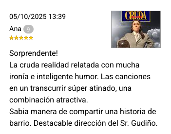 También podes leer opiniones del público en Alternativa Teatral.